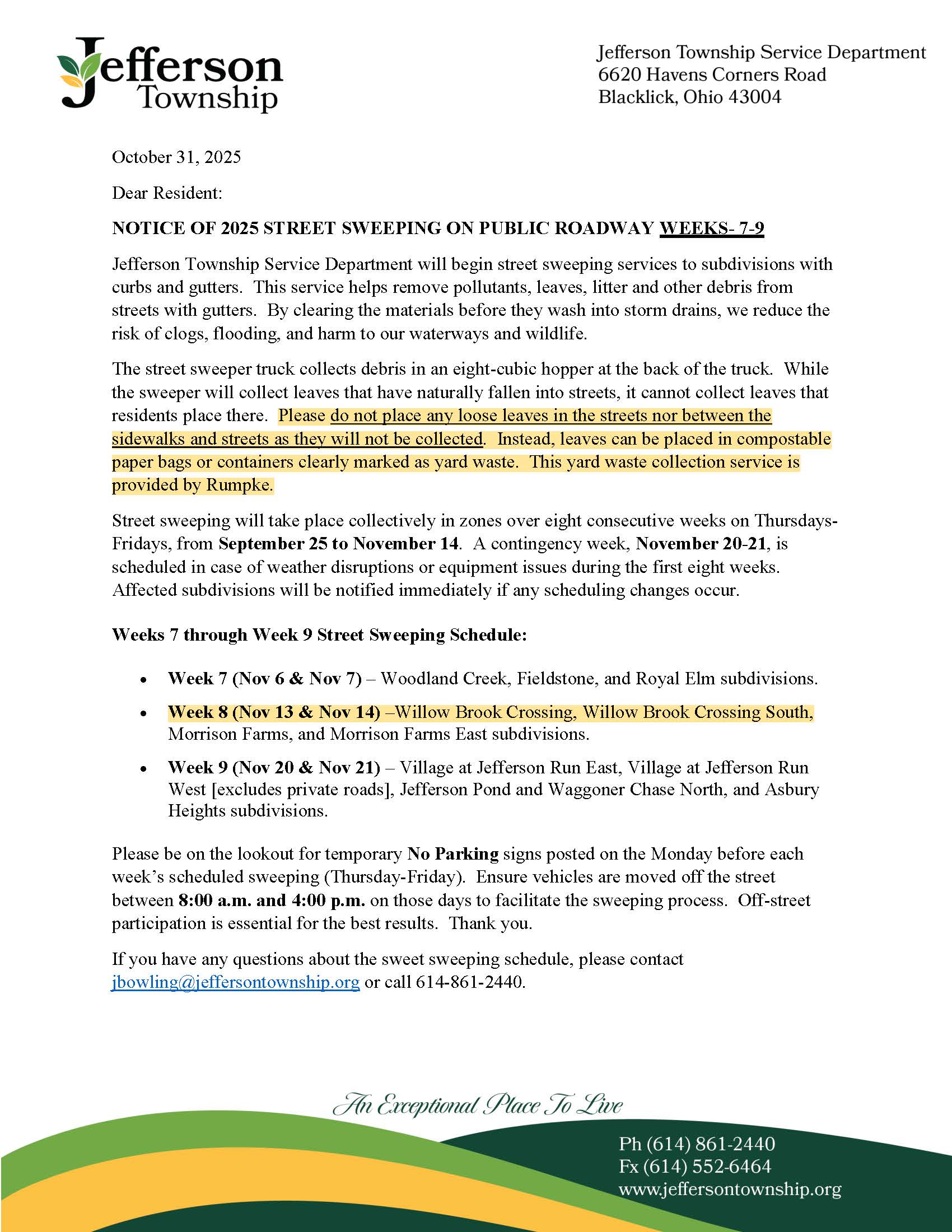 Email notice from Jefferson Township